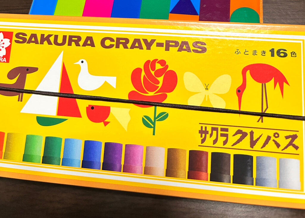 登園時の持ち物は「クレパスとクーピー」だったので、