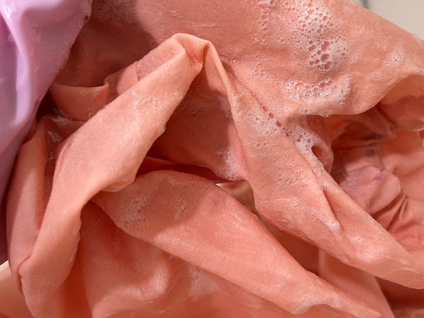 - 洗濯石けんをこすりつけ、歯ブラシでこすり洗い
