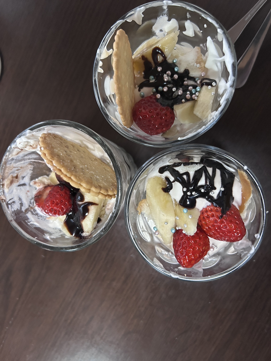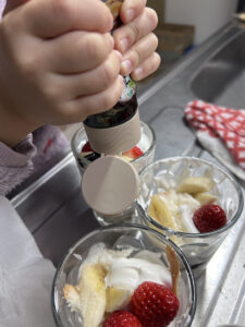 アイスやチョコソース、ジャムなどを用意すると